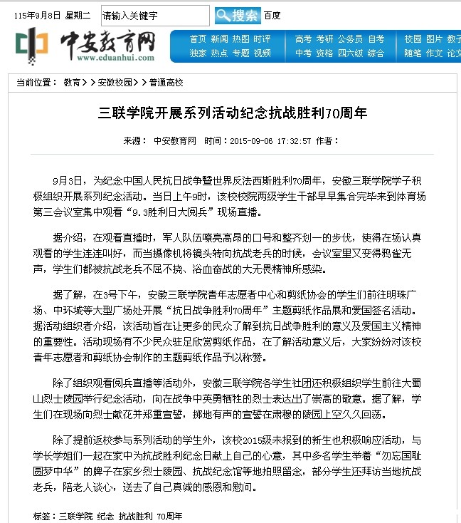 中安教育网报道链接:http://edu.anhuinews.com/system/2015/09/06/006940493.shtml