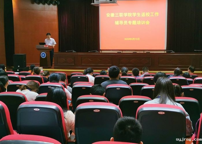 为筑牢疫情防控期间学生返校复学安全防线,维护师生安全和校园正常秩序,5月15日下午,学校在图书馆学术报告厅召开了2020年春季学期学生返校工作辅导员专题培训会。校党委副书记、副校长鲁先长,校长助理傅炜出席培训会。校长助理傅炜作培训动员讲话。培训由学生处处长李燕主持。